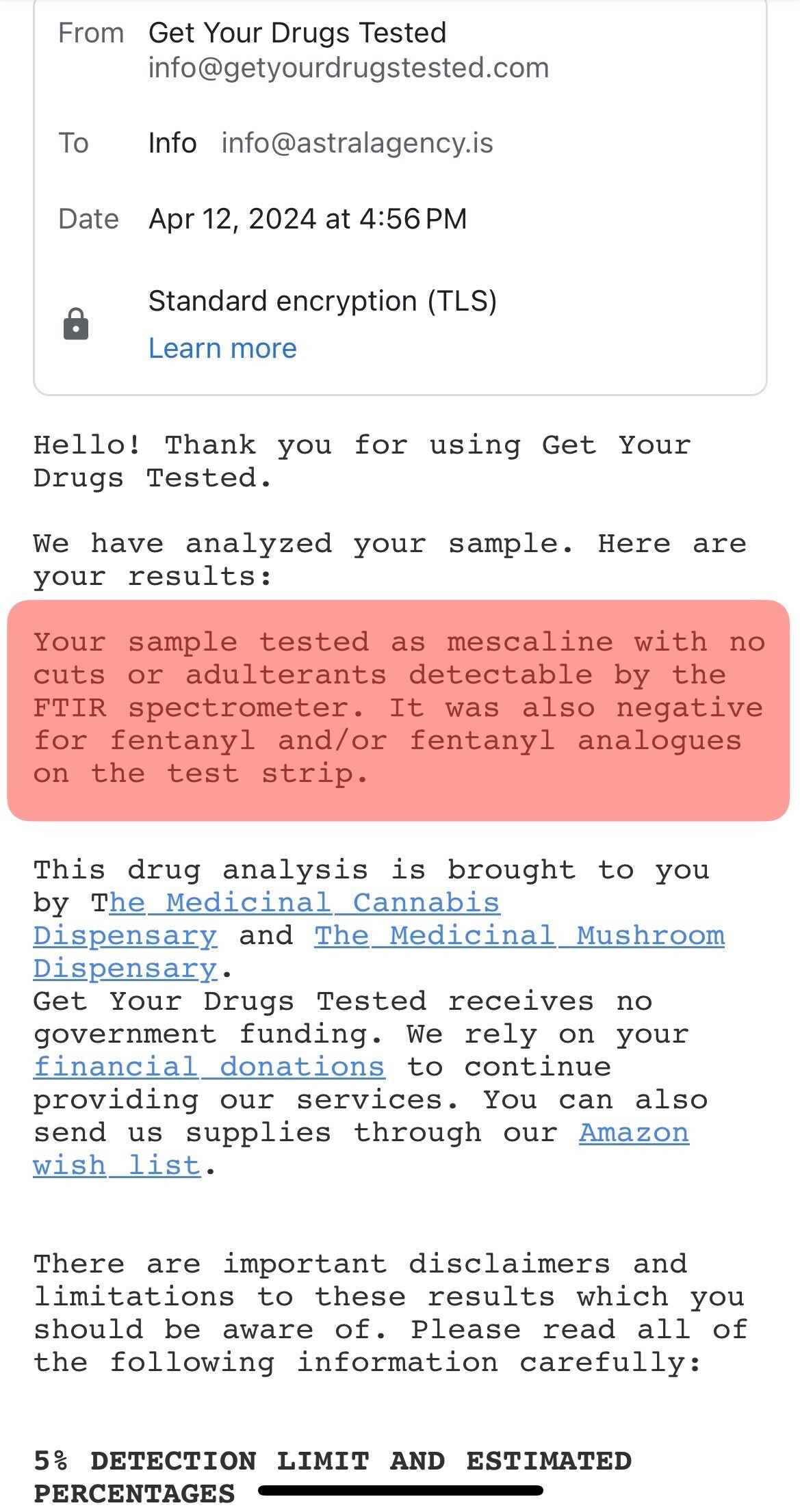 Fast shipping as always. First time I tried Mescaline and I did 300mg. The nausea part took like 1hour to calm down and a lot of ginger but afterward I felt happy like a MDMA trip, without the down at the end plus a bit of visual distortions. It was a smooth experience but intense at the same time. My mind was clear the whole trip and it lasted for 8hours +.